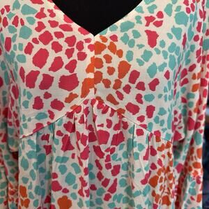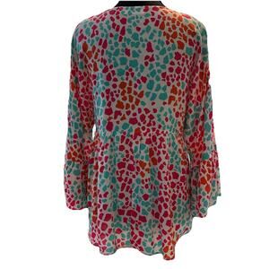 Lily Maes Boho Tunic Top V Neck 3/4 Sleeve Colorful Print Blouse Size Small