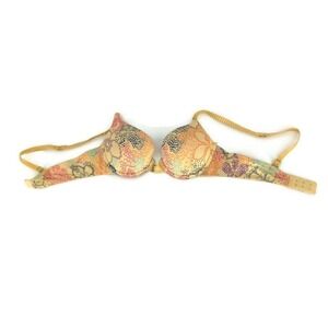 Lily Of France Womens Push Up Bra Multicolor Floral Stretch Underwire Padded 34A