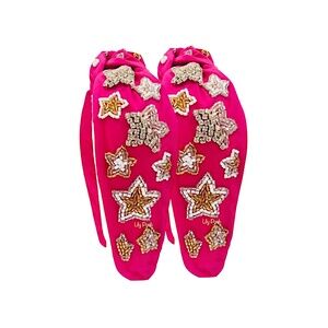 Lily Posh Beaded Stars Headband, Wide Knot Pink Headband, Star