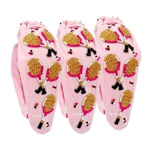 Lily Posh Beaded Tennis Headband, Wide Knot Pink Headband, Tennis