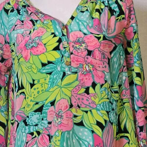 Lily Pulitzer 100% Silk Elsa Skip On It The Frog-Floral Print Blouse SZ XS