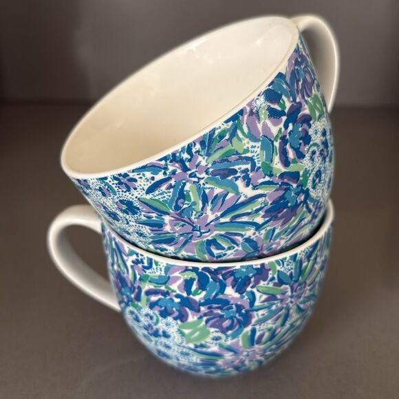 Lily Pulitzer | 2 Floral Blue and Green Ceramic Mugs