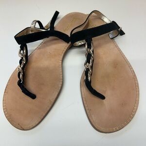 Suede T - strap with chain accent