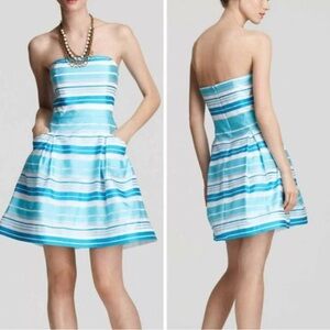 Lily Pulitzer Blue Strapless Pockets Blossom Silk Dress