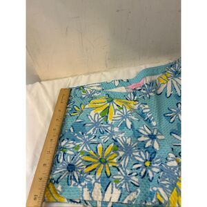 Lily Pulitzer Blue Yellow daisy shorts size 4. elastic waist, zipper on the side. measures 15.5" waist, 4" inseam. textured. good used condition.