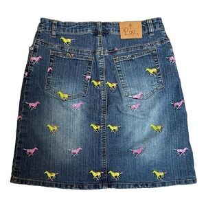 Lily Pulitzer Denim Embroidered Multicolored Horse Skirt