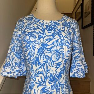 Lily Pulitzer Fiesta Stretch Dress Blue & White Key Hole Back Preppy Resort Wear