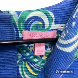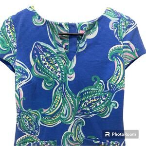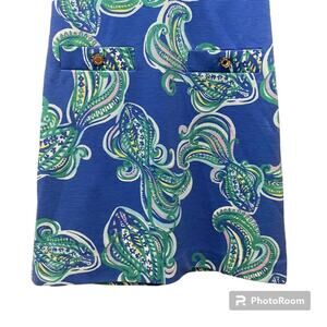 Lily Pulitzer Layton Blue Crush Shift Dress She Got Sole V-Neck Gold Buttons $198 XS