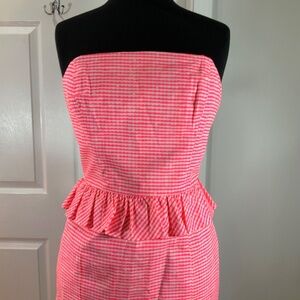 Lily Pulitzer Lowe Fiesta Pink Strapless Gingham Cotton Dress Size 4