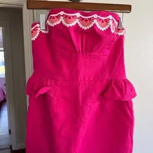 Lily Pulitzer Maybell Pinwheel Hot Pink Strapless Dress. EUC Size 6. This elegant hot pink strapless dress is perfect for any occasion. The flattering design and vibrant color make it a standout piece in your wardrobe.