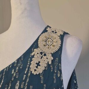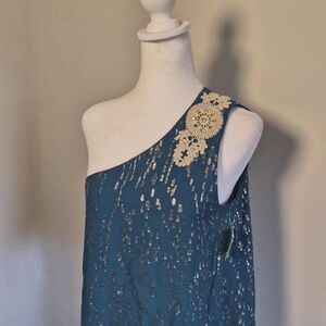 This BRAND NEW Lily Pulitzer top is a unique and exotic piece to add to the wardrobe. Made of 92% silk and 8% of this beautiful gold metallic. Lined with 100% polyester. The wide strap features embroidering with rhinestones.