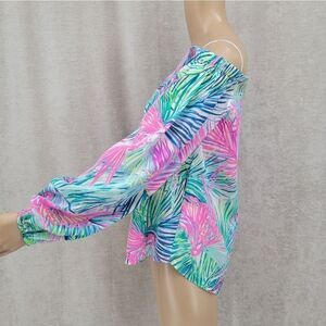 Lily Pulitzer Off The Shoulder Silk Adira Multi Scarlett Macaw Top Women's S
