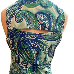 This dress is perfect for any day to night summer look. It has the Lily Pulitzer signature exposed front half zipper and a classic back cut-out.