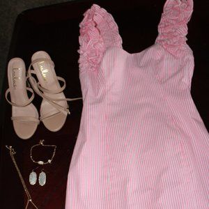 Beautiful, trendy summer dress! Wow everyone you meet in this fabulous show stopper! Light weight, easy care, excellent condition and stunning!