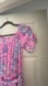Stylish maxi dress in pink and purple can be worn off shoulder or not. Features a tie waist for a flattering fit. Measures 17 inches pit to pit; 53 inches in length. Plenty of stretch if needed.