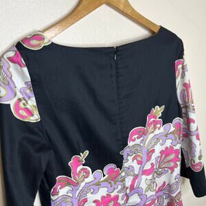 Lily Pulitzer Shauna Black Pink 3/4 Sleeve Dress 6. Preowned and in excellent condition. Dress is 100% cotton and light weight. Has 3/4 length sleeves and stops at the knee. Please see all photos. Approx measurements in pictures.