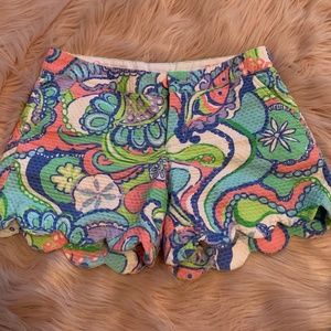 These adorable Lily Pulitzer Shorts have a scalloped bottom and fit perfectly. They show no signs of wear and do not have any stains.