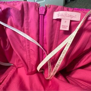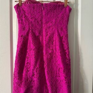 Chic strapless dress in bold fuchsia. Ideal for stylish outings.