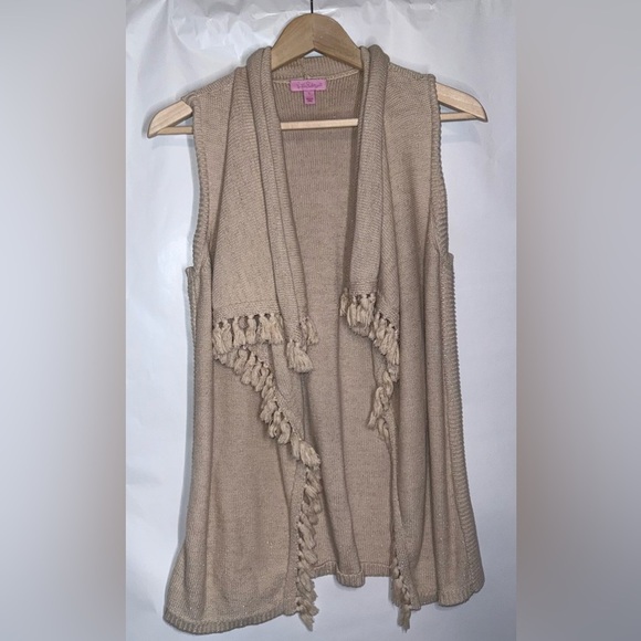 Lily Pulitzer Tatum Long Fringe Hem Cardigan Size Small Gold Metallic