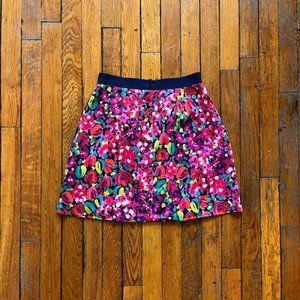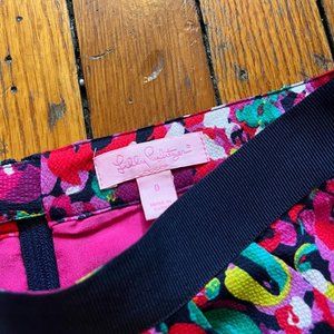Lily Pulitzer Women Multicolor Pink Green Blue Yellow Purple White Black Floral Flower All Over Pattern Mini Skirt.