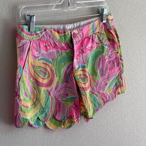Lily Pulitzer Women's Floral Flamingo Print Scalloped Buttercup Shorts SZ 0