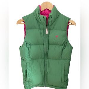 Lily Pulitzer Women’s Reversible Pink Green Puffer Vest, size S, 100% polyester