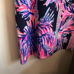 Lily Pulitzer Bright Navy Palms Up Dress, good condition normal wear, 3/4 sleeves, gold tone buttons, pull over dress, above the knee