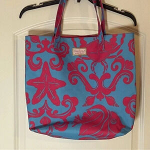 Lily Pulitzer x Estee Lauder Pink Blue Ocean Theme Canvas Beach Tote