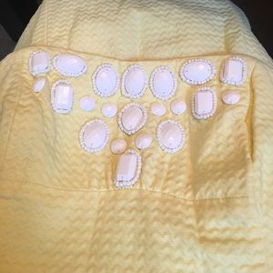 The best yellow dress ever! Yellow strapless blossom dress with white beading at the top. Has pockets!👍🏻👍🏻 size 0, excellent condition. Back zip and pleating front and back.