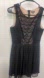 Elegant midi dress with intricate black lace. Cream lining for a classic look. Ideal for special occasions.