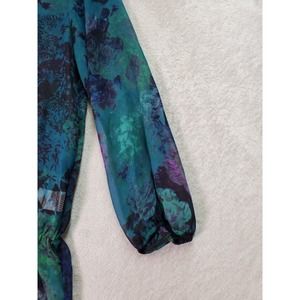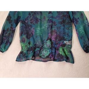 Lily Rose Blouse Top Womens Size Small Teal Floral Sheer Long Sleeve Round Neck
