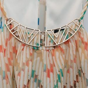 Gold tone colored piece at the neck line gives a pop of color and dimensions