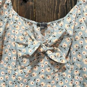 Lily Rose brand floral mini dress. Size large. Y2K style. Square neck babydoll with bowtie. Long sleeves. Boho chic. Flowy hem. Fit & flare. Flattering. Stretch material. Dress up or down. Preloved. Please see all photos for condition.