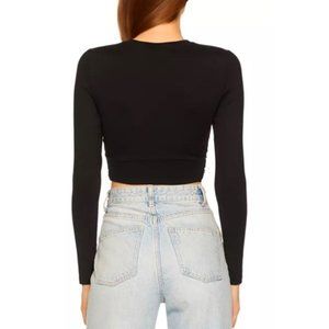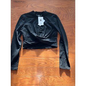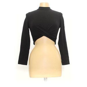 Lily Rose Girl Knotted Crop Top — Medium. This is a cute black crop with a front twist knot detail in the front, with a high collar. Great over pants, under a blazer, over jeans and even a skirt and over a dance outfit. Measurements: Bust: 28” ; Length: 15.5” ; Sleeves: 22”
