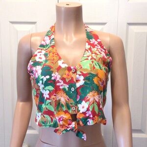 Lily Rose Juniors Floral Button Tie Front Crop Halter Tank Top. New with tags. From smoke free home.