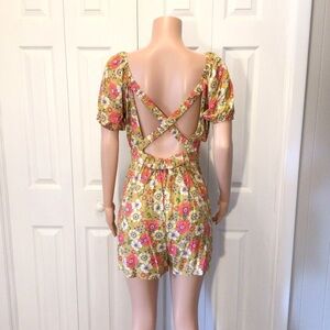 Lily Rose Juniors Yellow Floral Criss Cross Back Romper Size XXL. New with tags. From smoke free home.