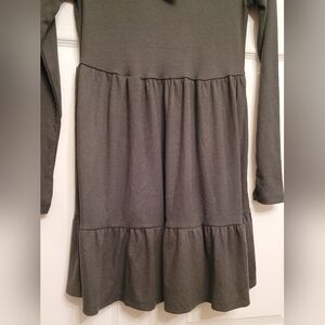 This lightweight, ribbed, tiered, long sleeve dress is great for layering with tights and boots, or with sandals in warmer months. Very light, soft, and comfortable.