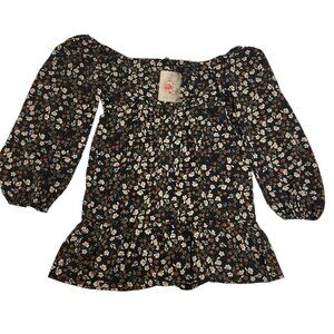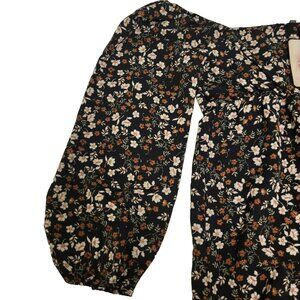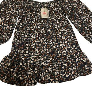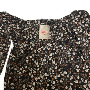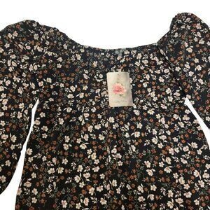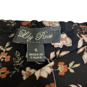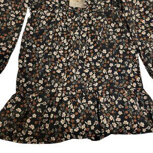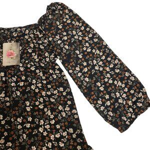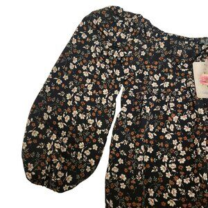 Lily Rose Long Sleeve Cinch Front Baby Doll Dress Black Floral Juniors Small S