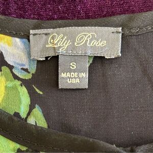 Lily Rose Pink and Yellow Sheer Floral and Black Blouse, Size S