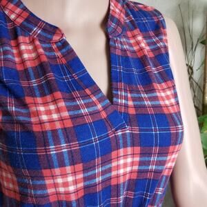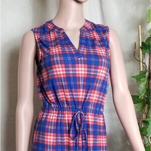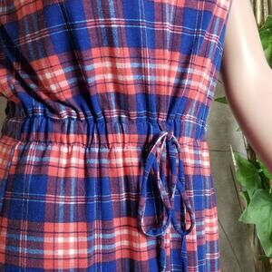 Lily Rose | Red Blue Plaid Dress Elastic Waist Tie Accent