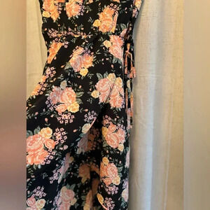 Lily Rose Size M (Junior) Sundress. Black, floral design with layering.