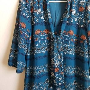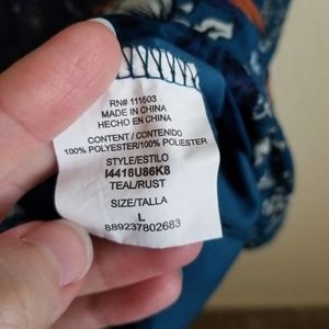 Lily Rose Teal and Rust 3/4 sleeve Dress L