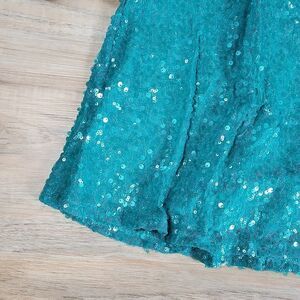 🔺️Lily Rose Teal Sequined One Shoulder Belted Sash Dress Small