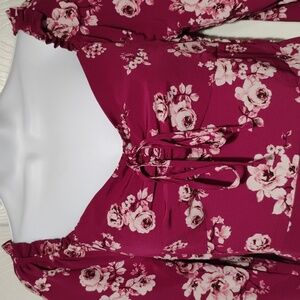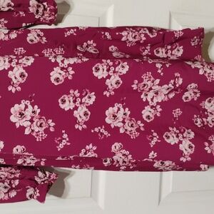 This charming sundress by Lily Rose features a a sweetheart neckline and 3/4 to full puff sleeves, that have elastic at end with cute ruffle. Also has an elastic upper back for great fitting. Sleeves can be worn up on shoulders or slightly off the shoulder for that feminine sexy look. Very lightweight material of 100% polyester. The white and burgundy color palette, combined with ruffled details, makes it perfect for a wedding guest or casual outing. Its romantic silhouette and elegant style ensure you stand out on any occasion. in excellent condition. measurements are approximately lying flat pit to pit 15 to 17/18".. due to added extra stretch. waist area 15 to 17" total length from top shoulder to bottom 40" from waist to bottom 28". really pretty