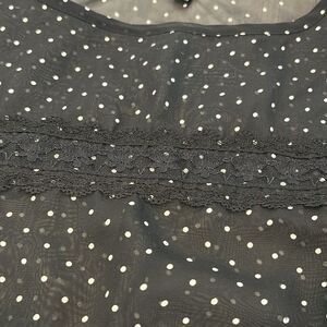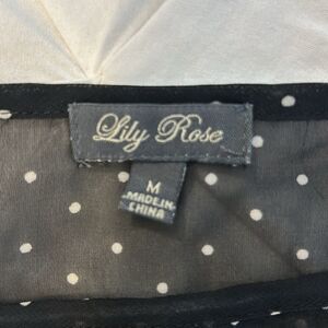 Lily Rose Women's Black & White Polka Dot Crew Neck Long Sleeves Peplum Blouse M