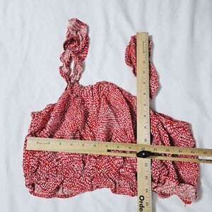 Lily Rose presents a multi-colored, polka dot, crop top in size XL. This trendy top, made from 100% rayon, features an elastic band around the bottom and straps, ensuring a snug fit.