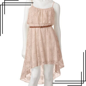 Lily Rose Women's M Spaghetti Strap Lace Blush Hi-Low Dress