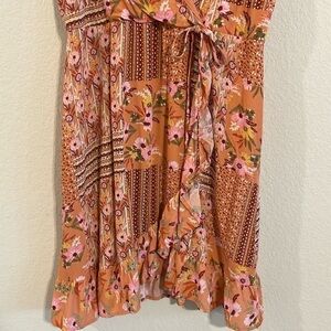 Lily Rose Pink Ditsy Floral Cross Bust Faux Wrap Ruffle Mini Dress