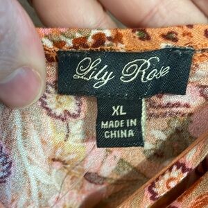 Lily Rose Women's Midi Dress XL Pink Ditsy Floral Ruffle Feminine Contemporary