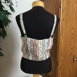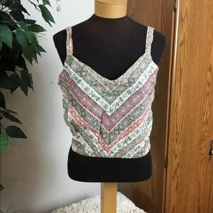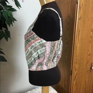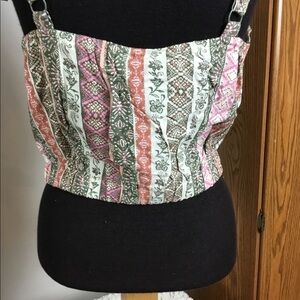 Lily Rose XL olive/pink/ivory smocked tank/crop top elastic hem and adjustable straps approximate pit to,pit 17 shoulder to hem 18 refer to photos for more details
